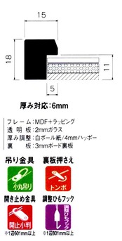 ・作品厚み:6ミリ迄(中抜きマットを入れる場合には作品厚み4ミリ迄)
