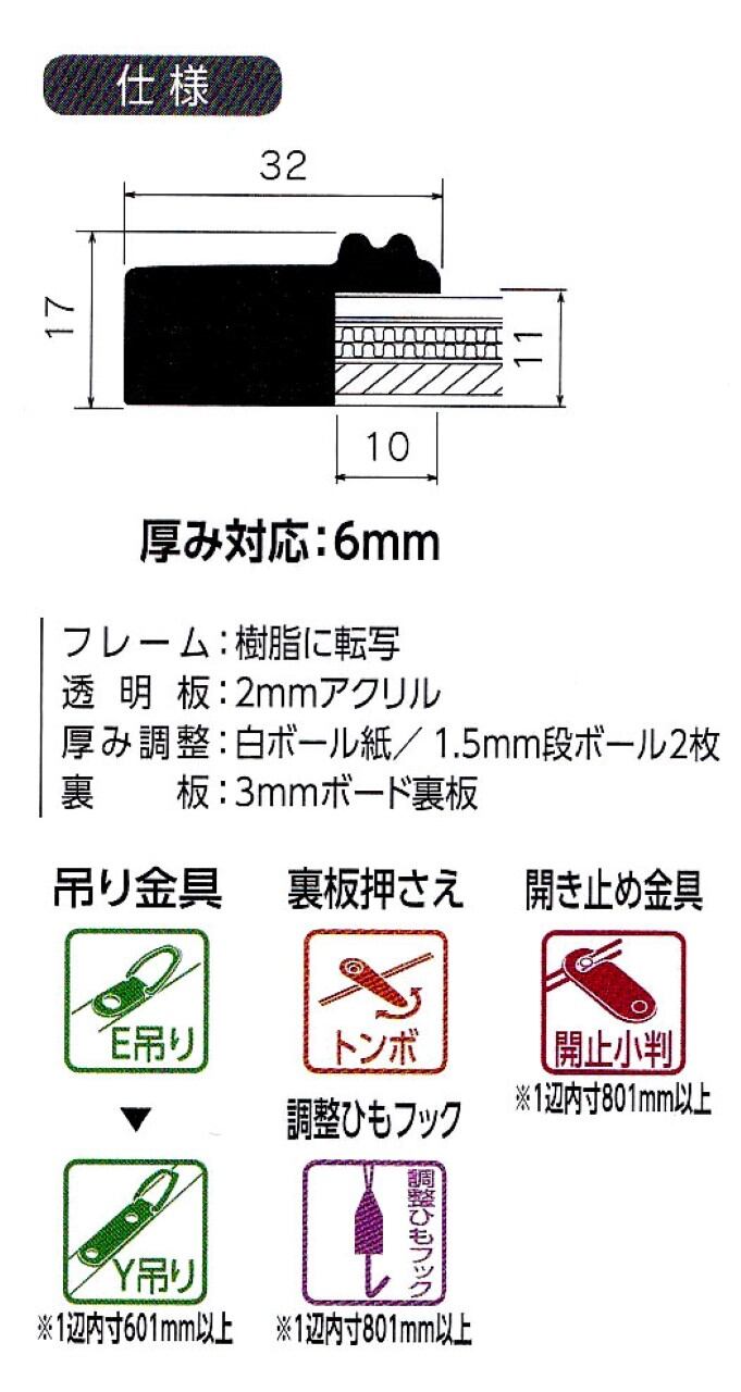 ・作品厚み:6ミリ迄(中抜きマットを入れる場合には作品厚み4ミリ迄)