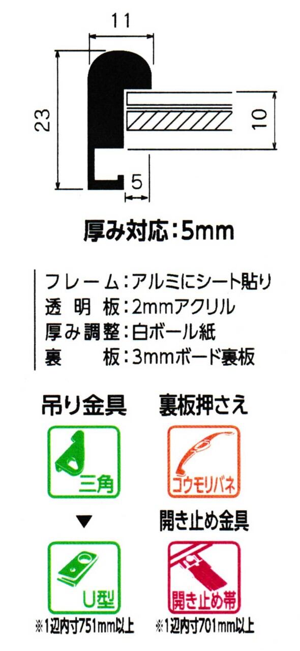 ・作品厚み:5ミリ迄(中抜きマットを入れる場合には作品厚み3ミリ迄)